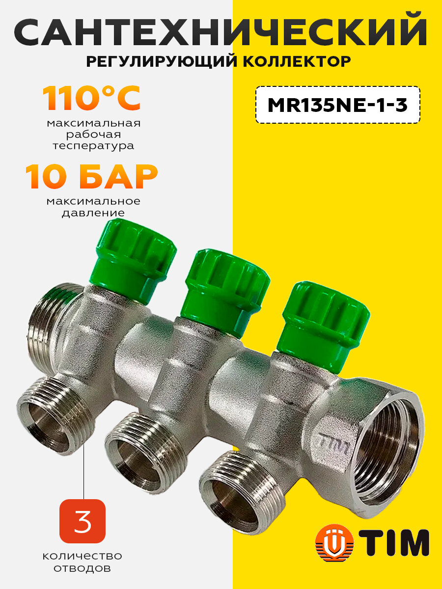Купить TIM Коллектор 45' с кран-буксами 1" г/ш х 3/4 под евроконус - 3 вых. арт. MR135NE-1-3
