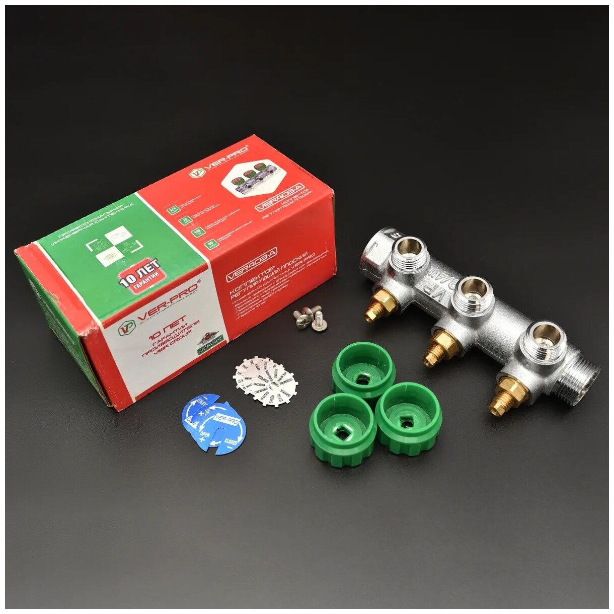 Коллектор 3/4"х1/2"НР - 3 выхода плоский с регулировочными вентилями для водоснабжения хром VER403-A интересное: