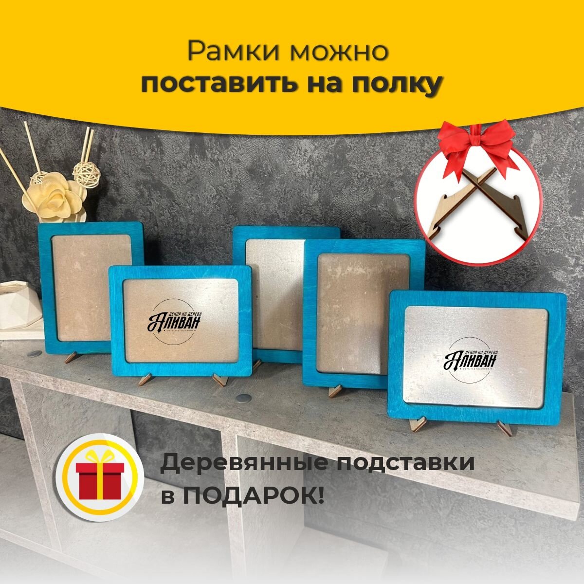 Рамки для фото 9х12 из дерева, комплект 5шт, цвет морилка бирюза интересное: