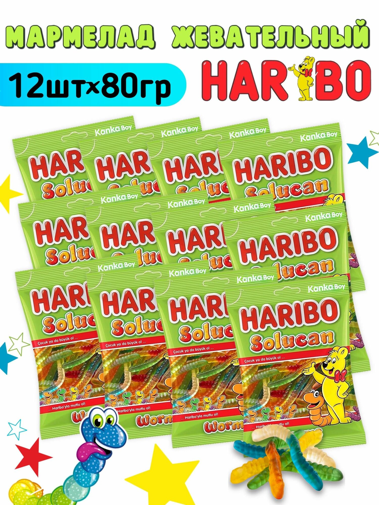 СохранитьHaribo жевательный мармелад Червячки (Worms) 12 упаковок по 80 грамм интересное: