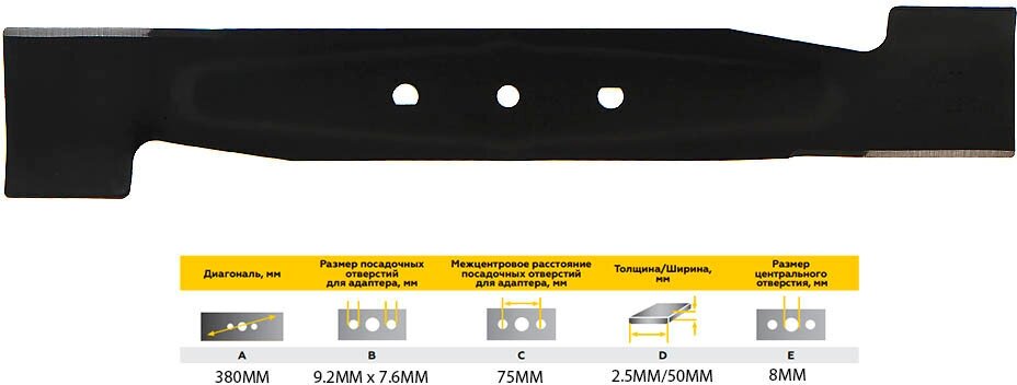 Нож для газонокосилки CHAMPION EM3815,EMB400 (A-380B-9,2x7,6C-75D-2,5/50E-8,1), C5211 №796