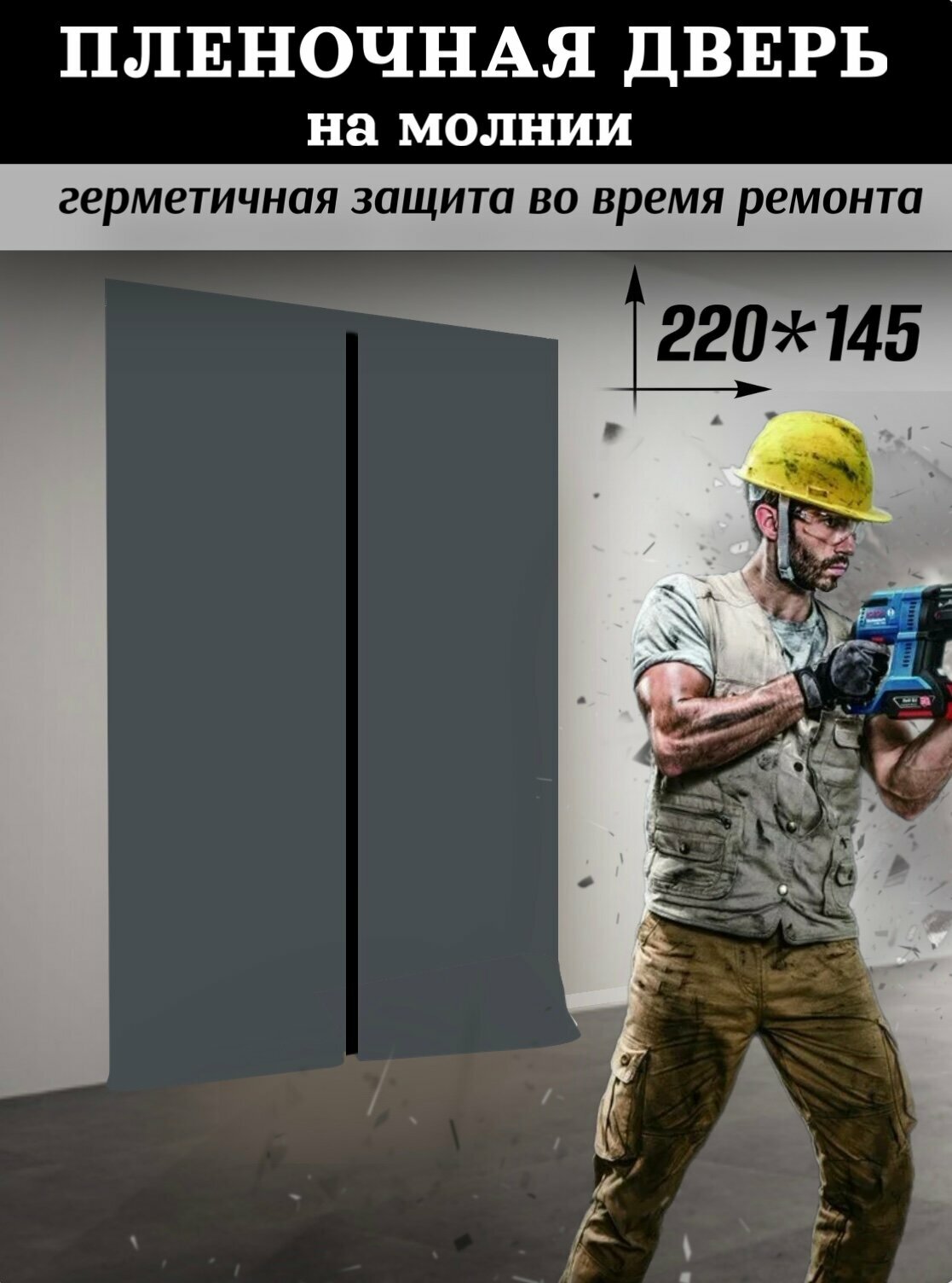 Временная пленочная дверь на молнии от пыли 220*155 1шт