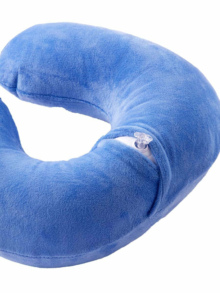 Подушка для шеи с эффектом памяти Velur синяя с карманом