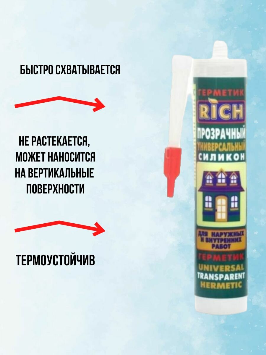 Герметик универсальный прозрачный силикон 1 шт, 280мл, RICH интересное: