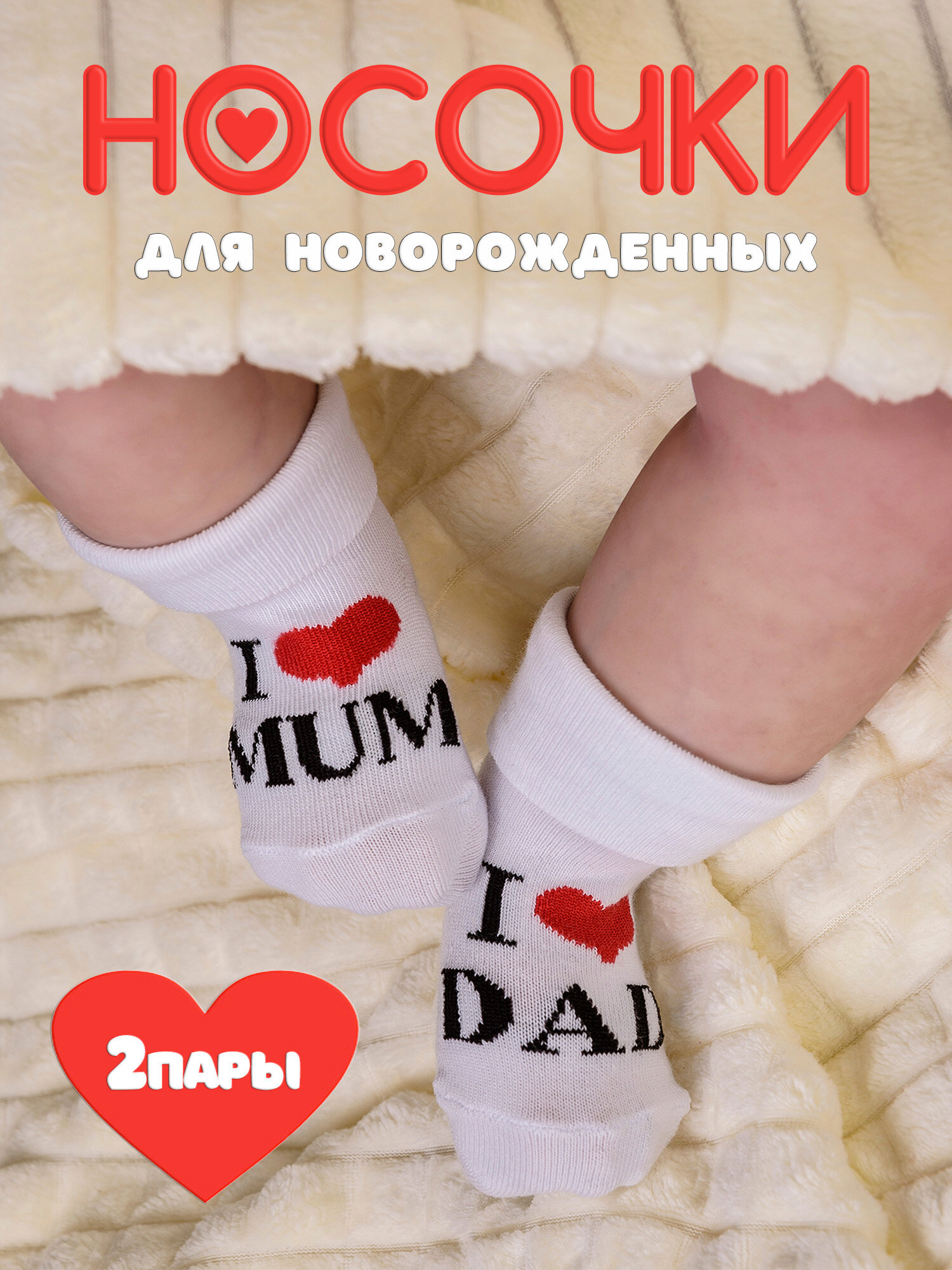 Носки LerNa для новорожденных, 2 пары, размер 6-12 мес(9,5-11,5см), , белый