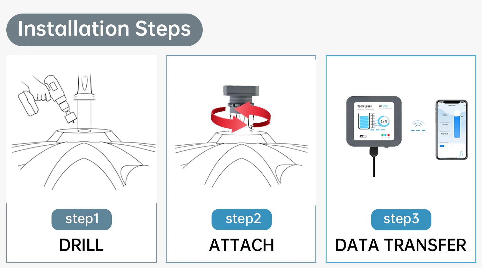 Купить Беспроводной датчик уровня воды EPTTECH TLC2404 8м, EU 100-240V AC