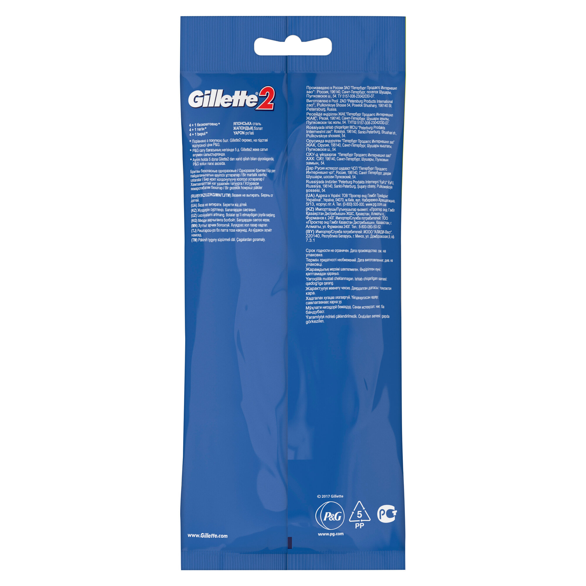 Одноразовая мужская бритва Gillette2 (Жиллетт2), 4+1 шт.