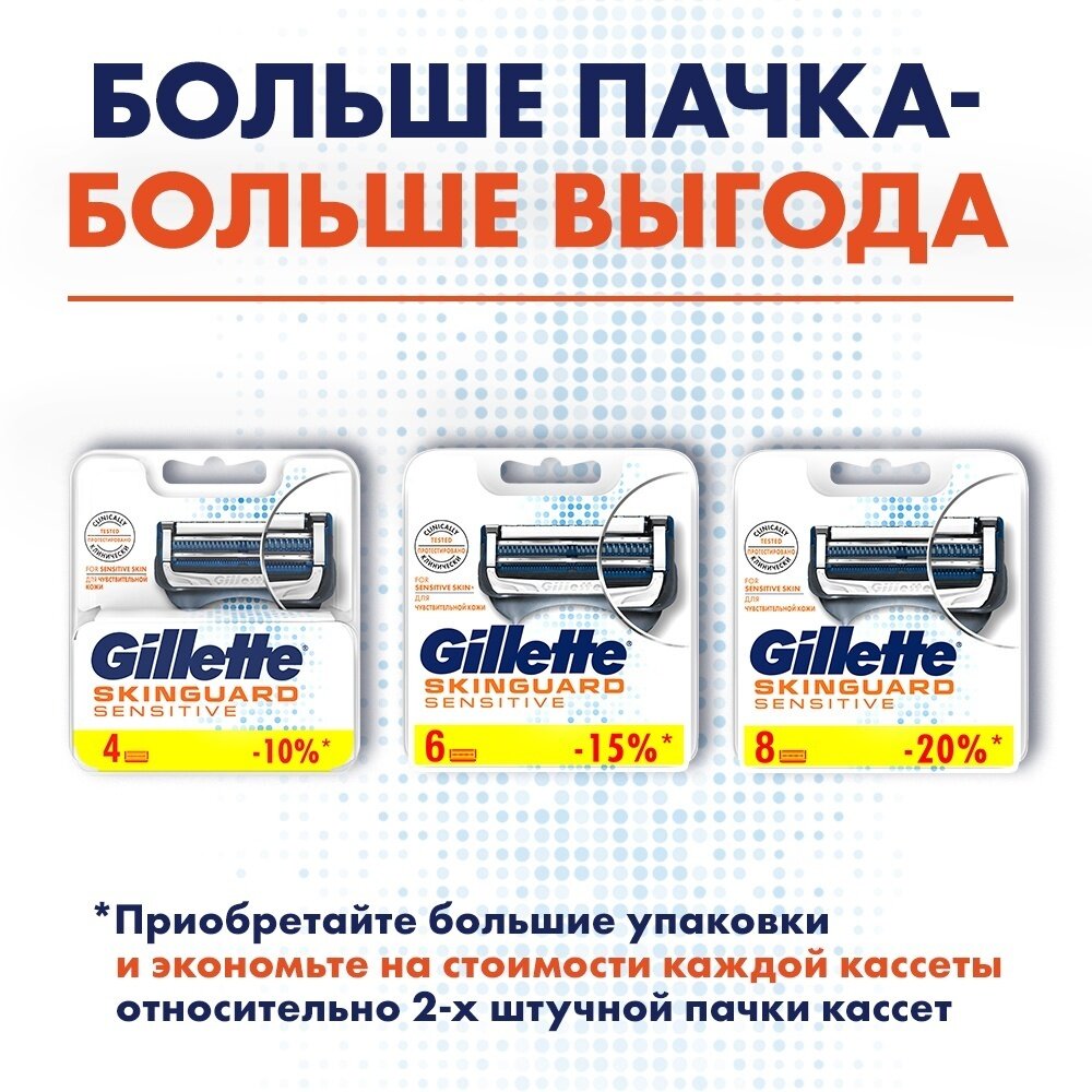 Купить Бритва для мужчин Gillette Skinguard Sensitive, 2 сменные кассеты для бритья