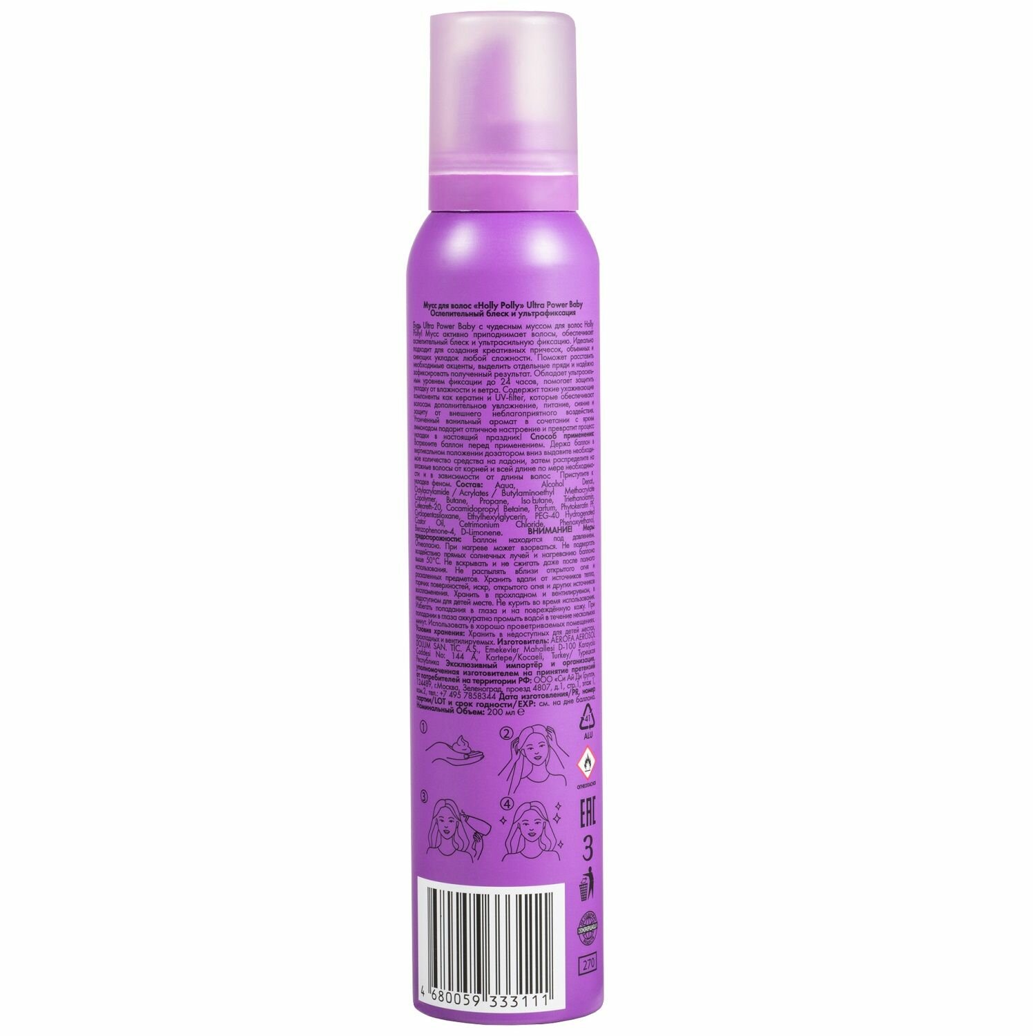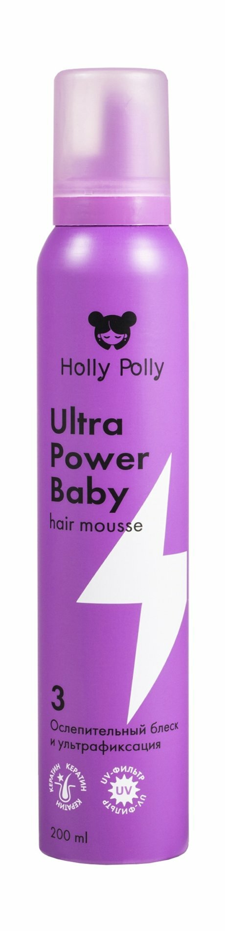 HOLLY POLLY Мусс для волос Holly Polly Ultra Power Baby Ослепительный Блеск и Ультрафиксация, 200 мл