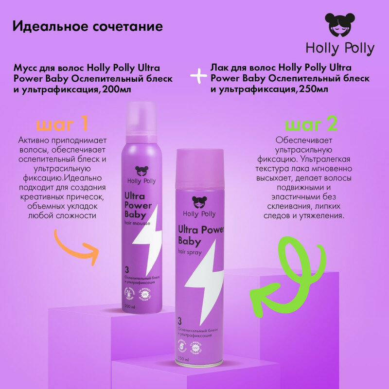 Holly Polly ultra power baby hair mousse - Холли Полли Мусс для волос «Ослепительный блеск и ультрафиксация», 200 мл - интересное: