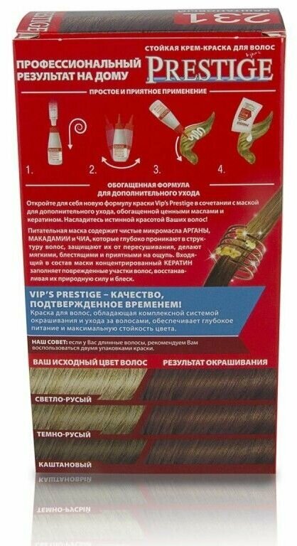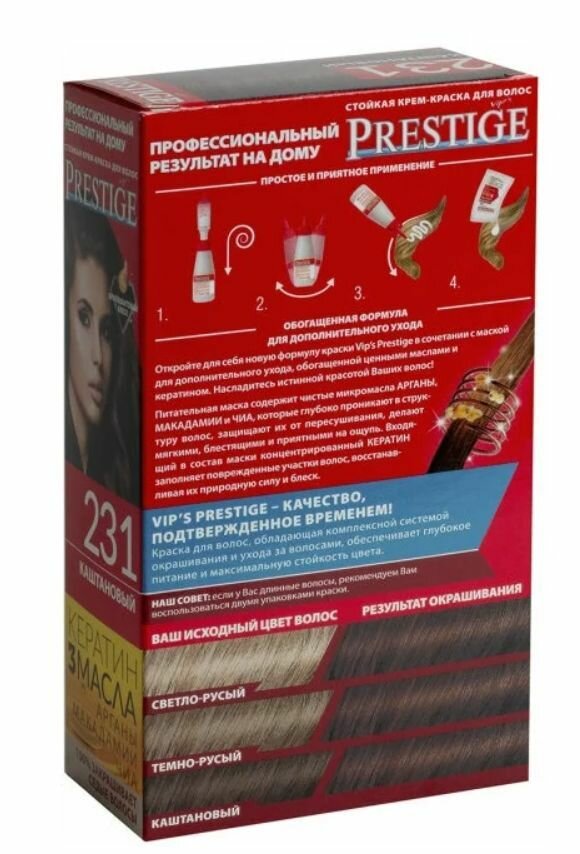 VIP's Prestige Бриллиантовый блеск стойкая крем-краска для волос, 231 каштановый