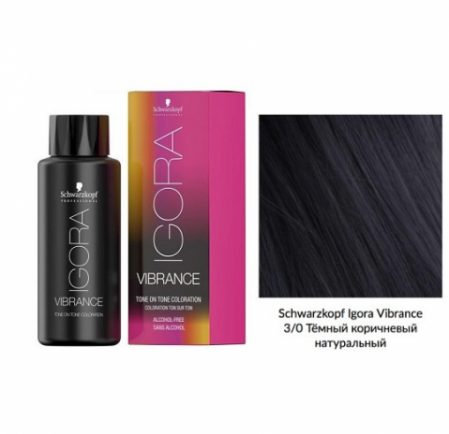 Ниже Вы можете прочитать отзывы на Schwarzkopf Igora Vibrance Краситель для волос 3/0 тёмный коричневый натуральный 60мл, ознакомится с подробными характеристиками, посмотреть интересные обзоры и фотографии на Schwarzkopf Igora Vibrance Краситель для волос 3/0 тёмный коричневый натуральный 60мл.