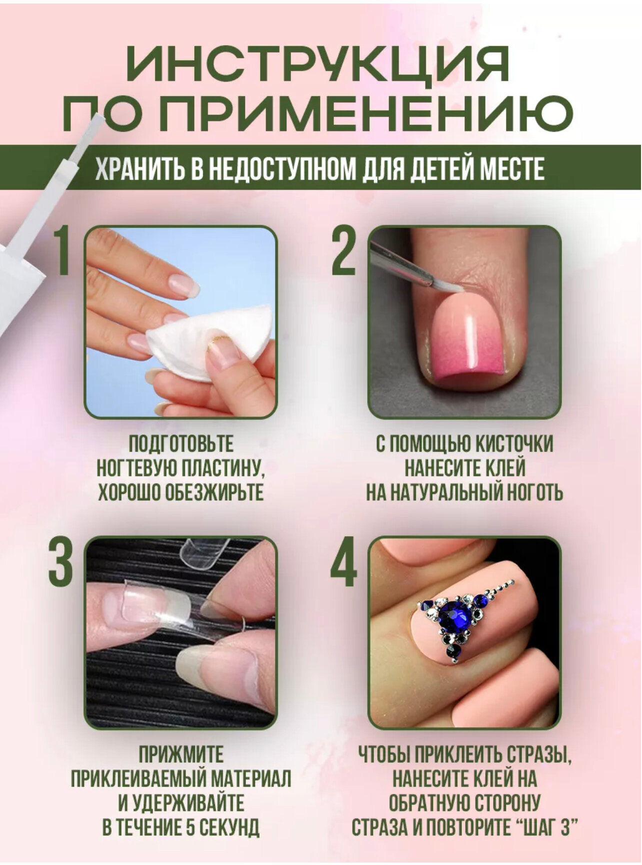 Накладные ногти с клеем и дизайном