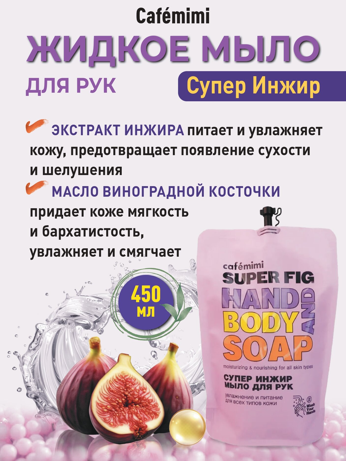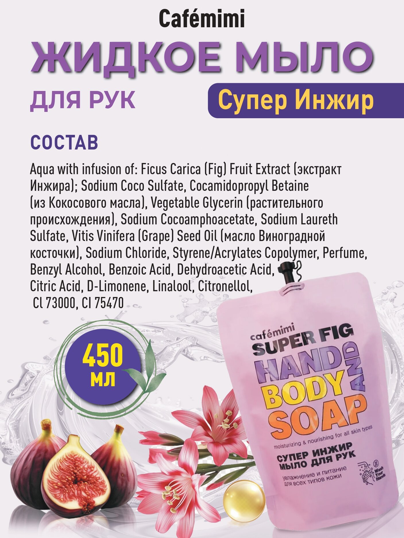 Cafe mimi Жидкое мыло для рук Супер Инжир (запаска), Cafe mimi 450 мл интересное: