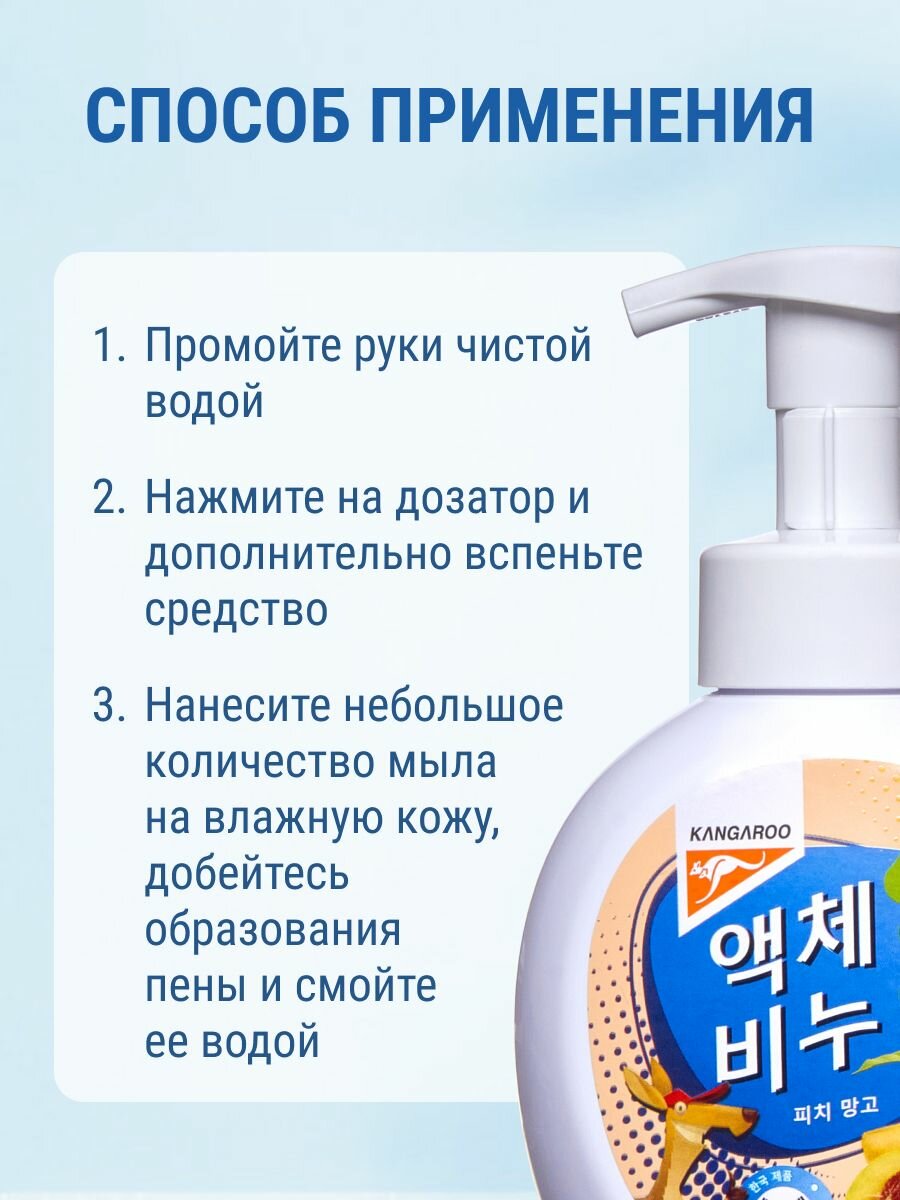 Купить Корейское жидкое мыло-пенка для рук Kangaroo Home с ароматом персика и манго 500 мл