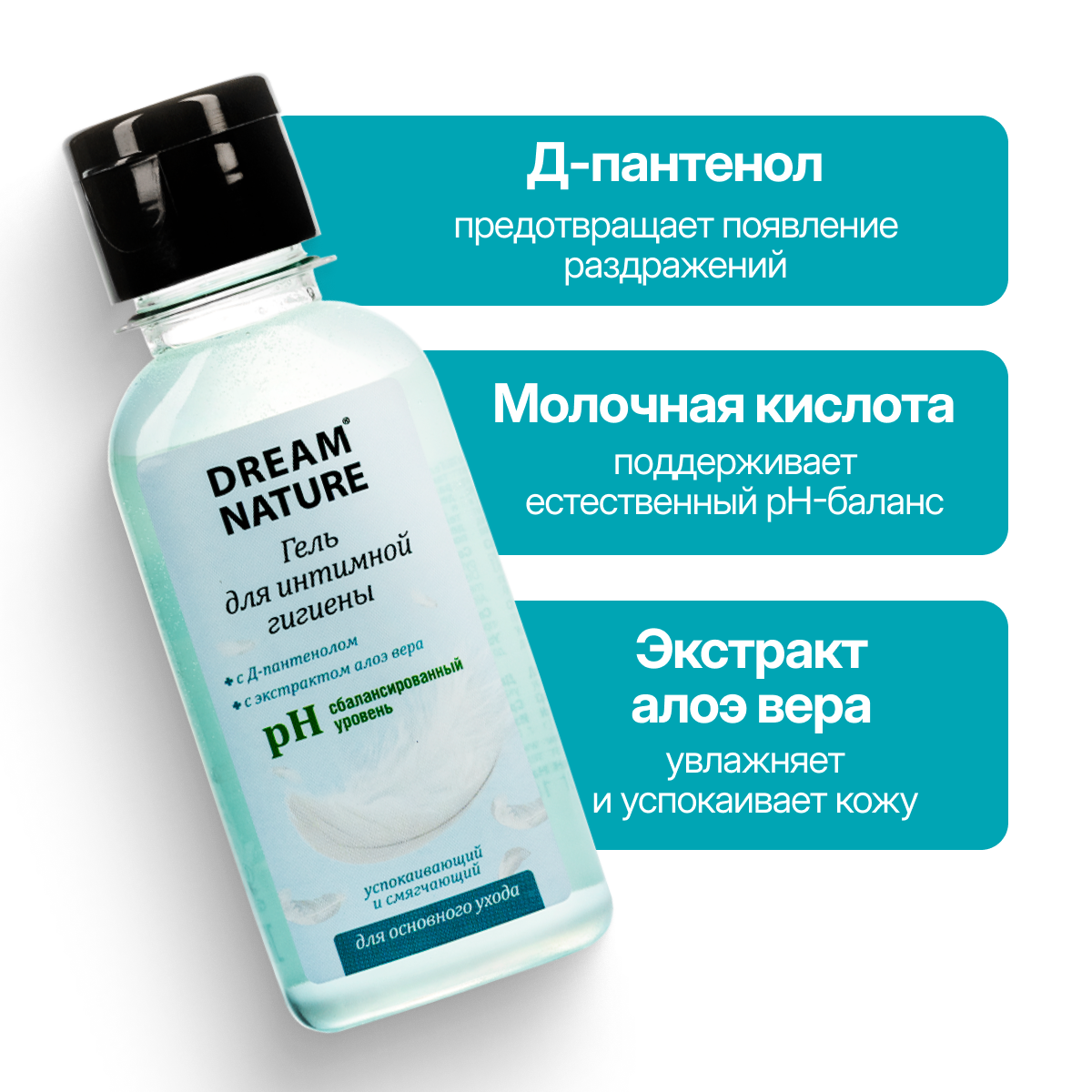 Гель для интимной гигиены Dream Nature, pH 7, женский, с Д-пантенолом и экстрактом алоэ-вера, 100 мл