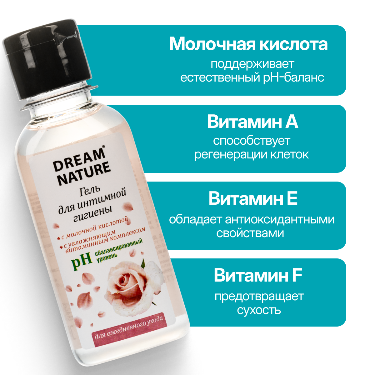 Гель для интимной гигиены Dream Nature, pH 7, женский, с молочной кислотой и увлажняющим витаминным комплексом, 100 мл