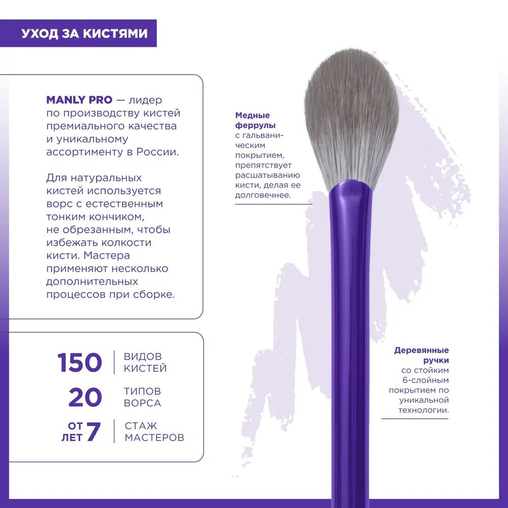 Кисть MANLY PRO К124* для тональных основ, жидких румян, хайлайтеров, кремовых текстур