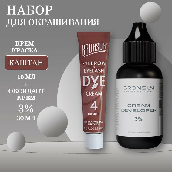 Купить Набор Крем-краска для бровей каштан #4 new и Оксидант-крем 3% BRONSUN, 30 мл