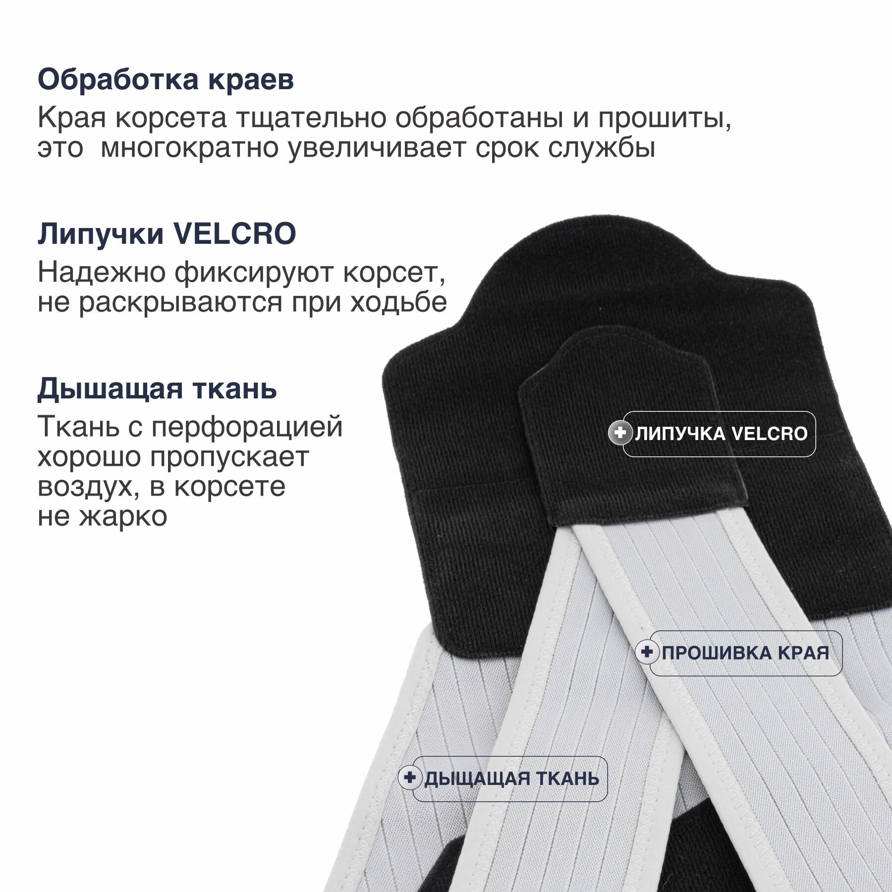 Корсет для спины ортопедический поясничный с 2-х ступенчатой степенью фиксации - р.S ( обхват талии 70-86 см), серый