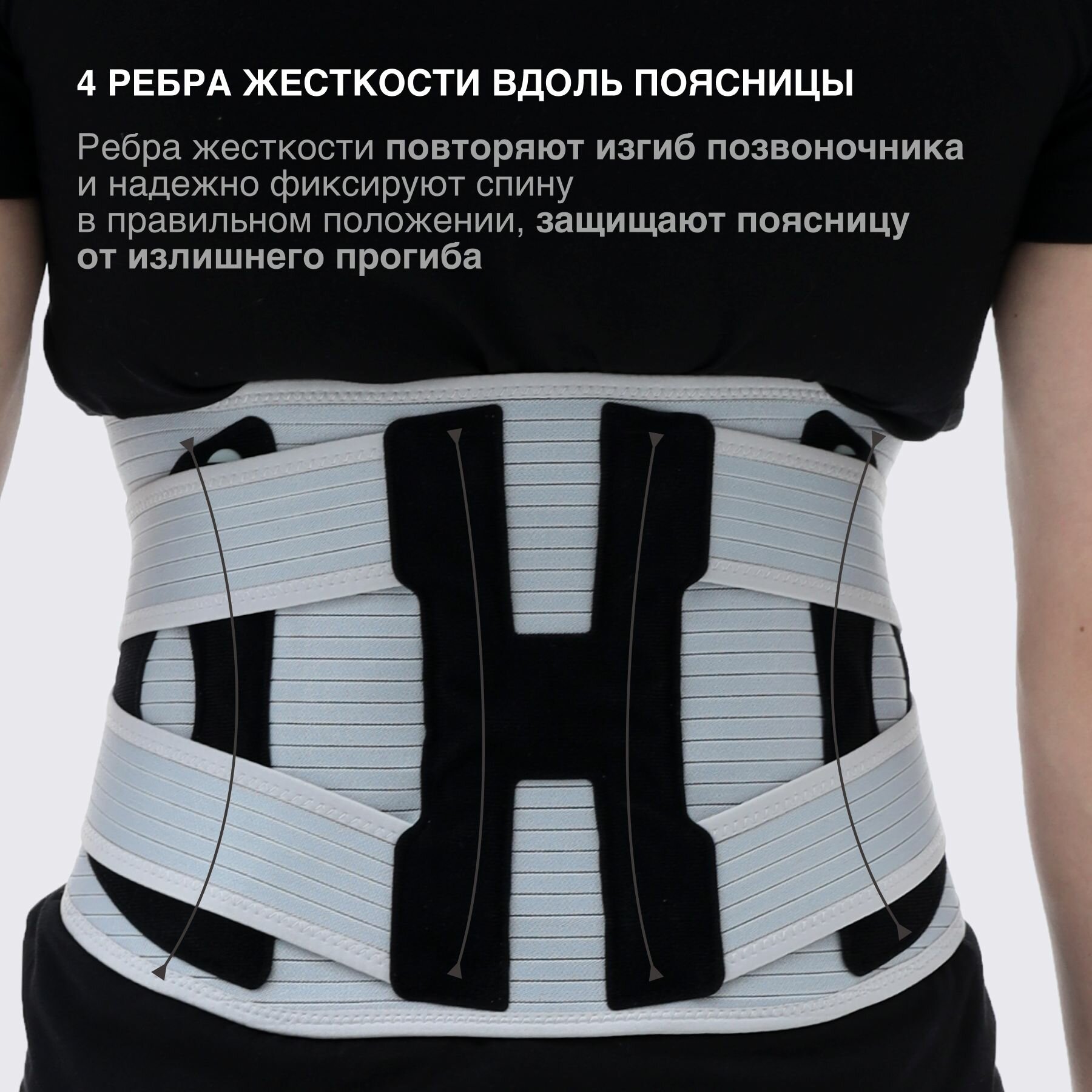 Корсет для спины ортопедический поясничный с 2-х ступенчатой степенью фиксации - р.M-L ( обхват талии 86-101 см), серый