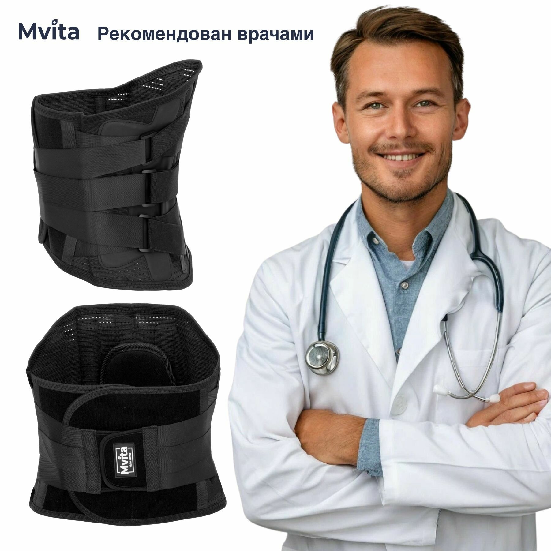 Корсет для спины ортопедический пояснично-крестцовый с 3-х ступенчатой степенью фиксации - р.M ( обхват талии 71-78 см), черный