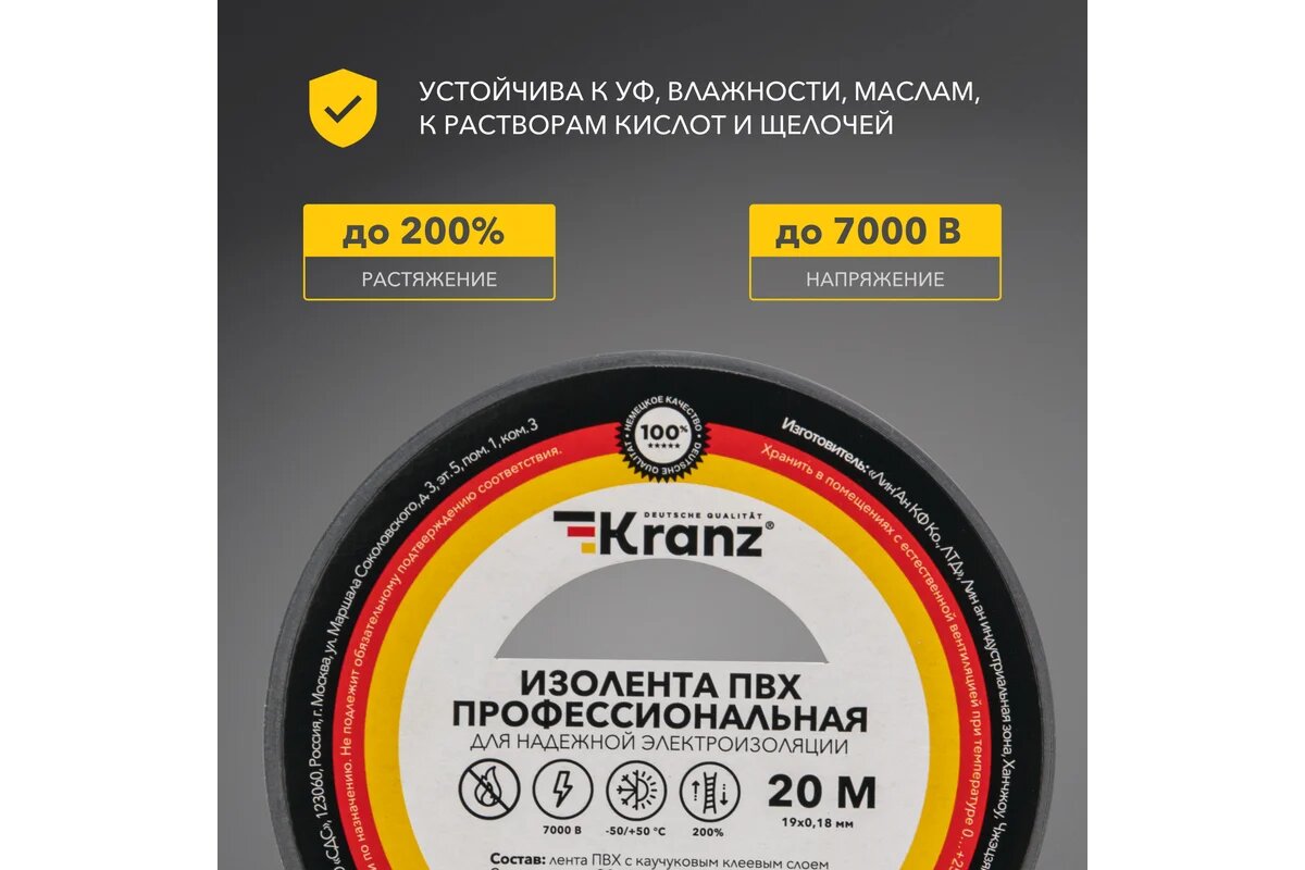 KRANZ KR-09-2806 Изолента ПВХ KRANZ профессиональная, 0.18х19 мм, 20 м, черная kanz Kranz KR-09-2806
