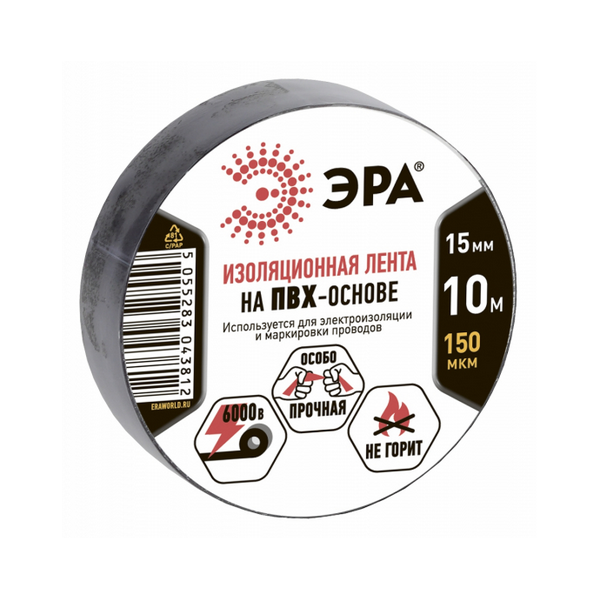 Изолента ПВХ 15ммх10м черн. ЭРА C0036558