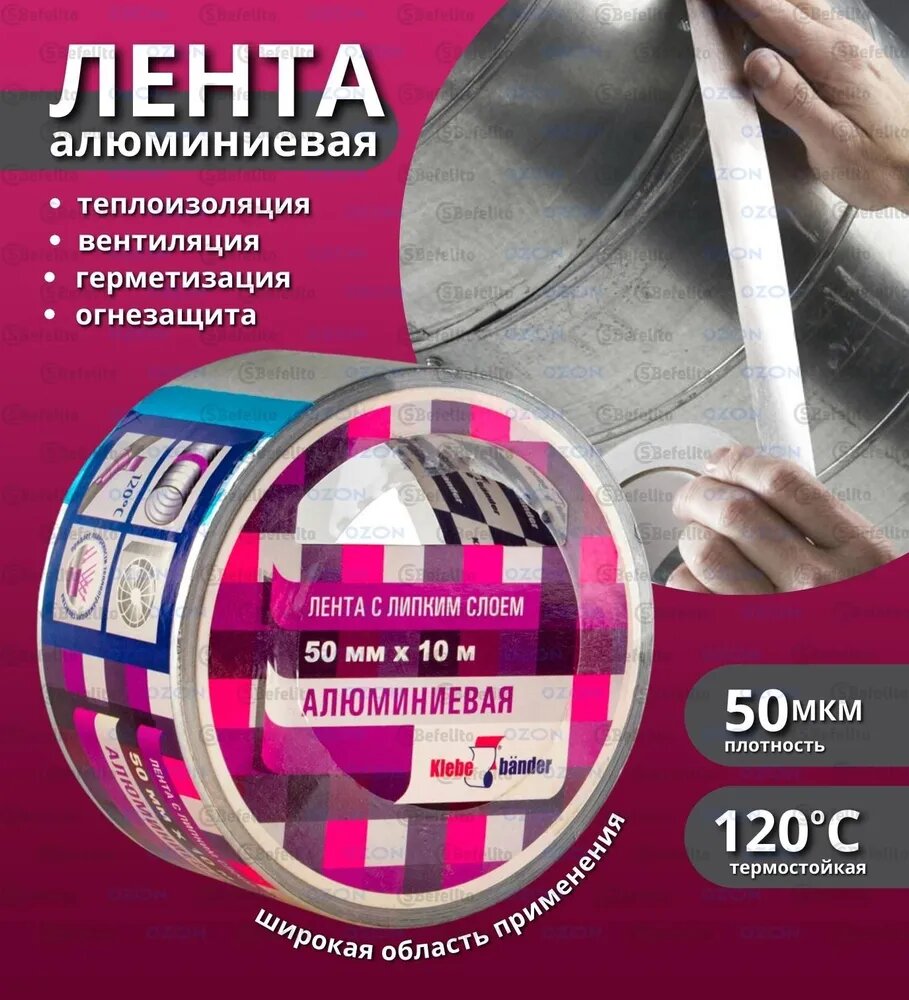 Алюминиевая клейкая лента (скотч), KLEBEBANDER 50ммх10м (на основе алюминиевой фольги) интересное: