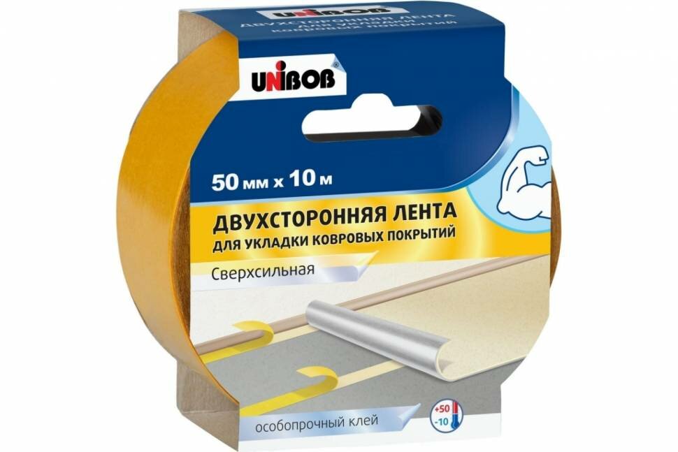 Скотч двусторонний Unibob, для укладки ковровых покрытий, 50 мм x 10 м