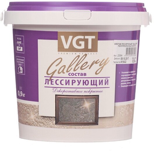 VGT Состав лессирующий "Gallery" полупрозрачный бесцветный 0.9 кг