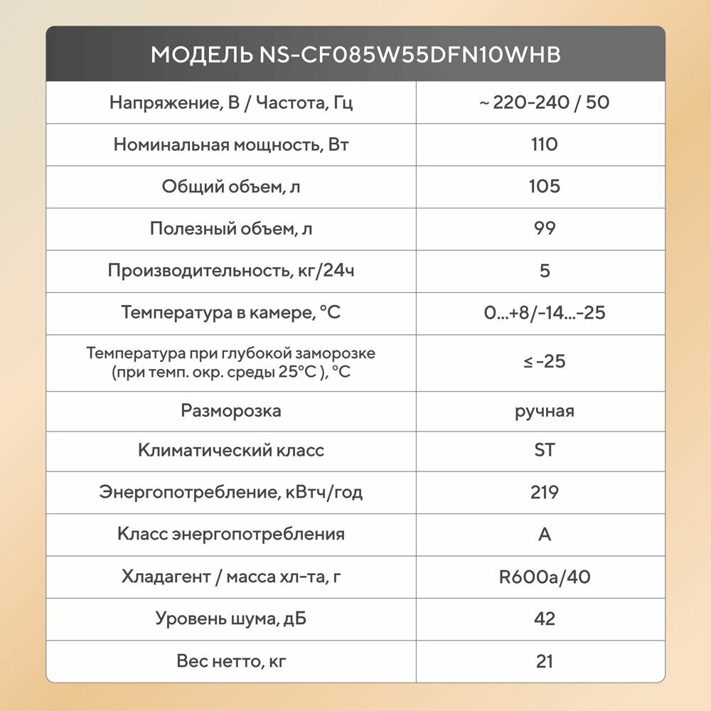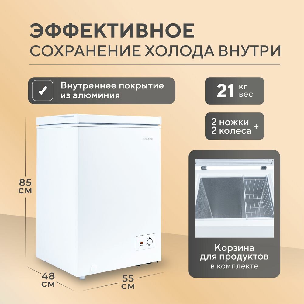 Купить Морозильная камера ларь105 литров Морозильник вертикальный с корзиной белый Nesons NS-CF085W55DFN10WHB