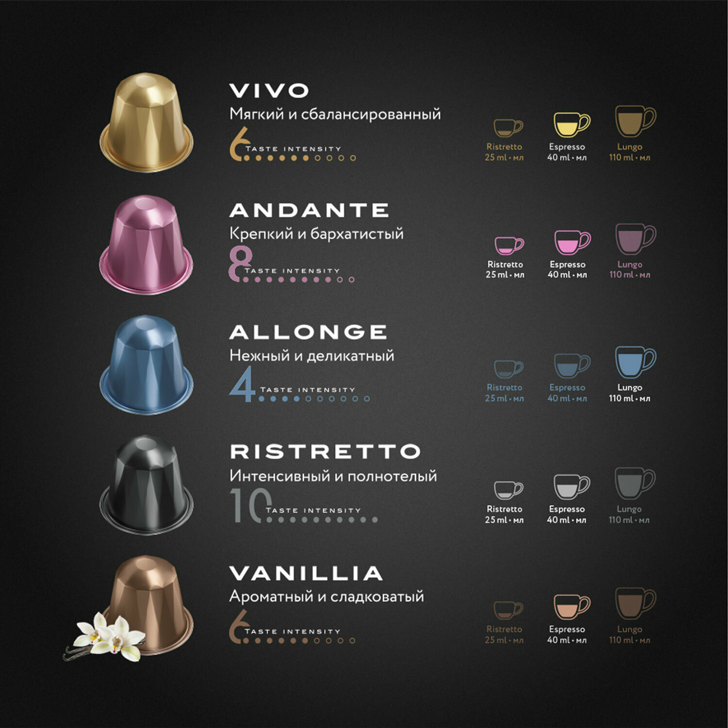 | Состав набора | Andante 4 шт. Ristretto 4 шт. Vivo 4 шт. Allonge 4 шт. Vanillia 4 шт. |
