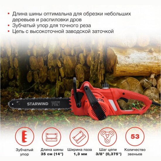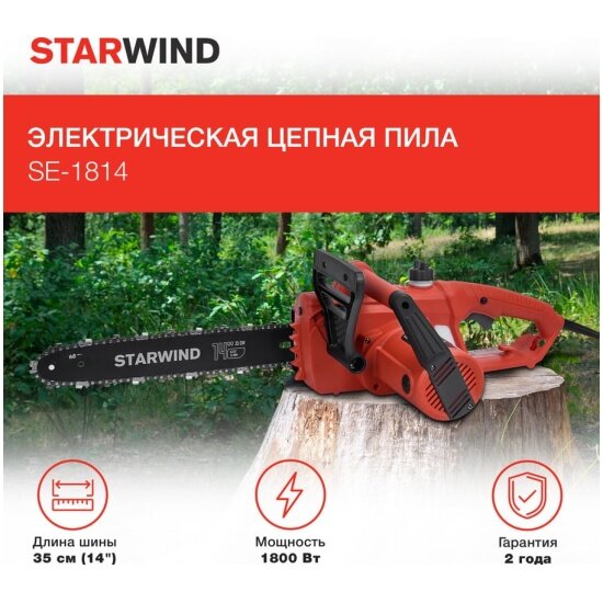 Электрическая цепная пила Starwind SE-1814 1800 Вт, длина шины: 14" - 35 см.
