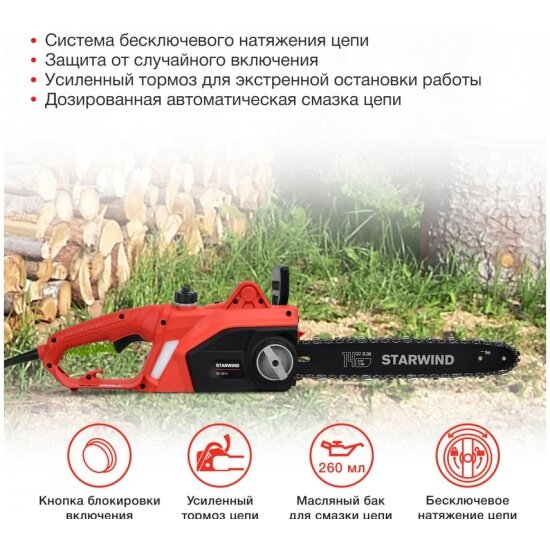 Электрическая цепная пила Starwind SE-2016 2000 Вт, длина шины: 16" - 40 см.