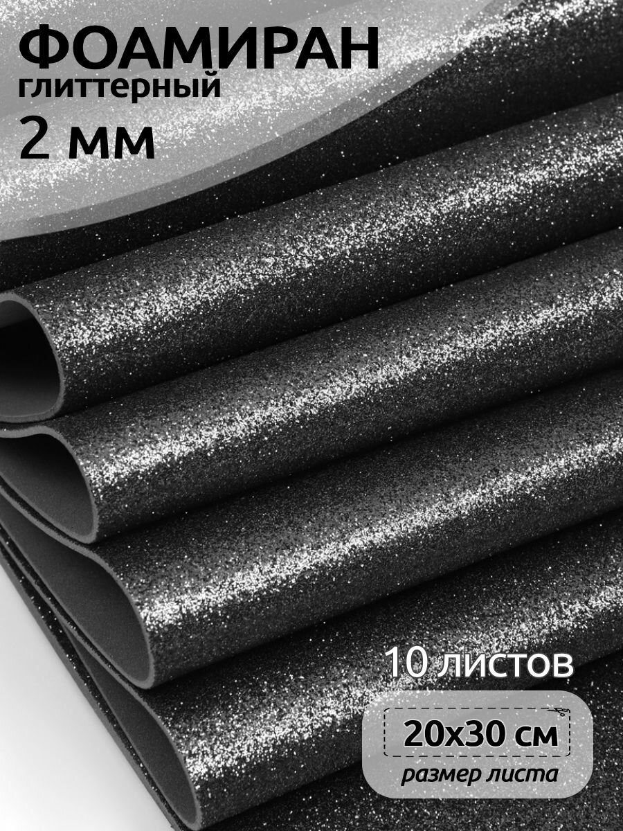Купить Фоамиран глиттерный Magic 4 Hobby 2 мм арт. MG. GLIT. H019 цв. черный, 20х30 см
