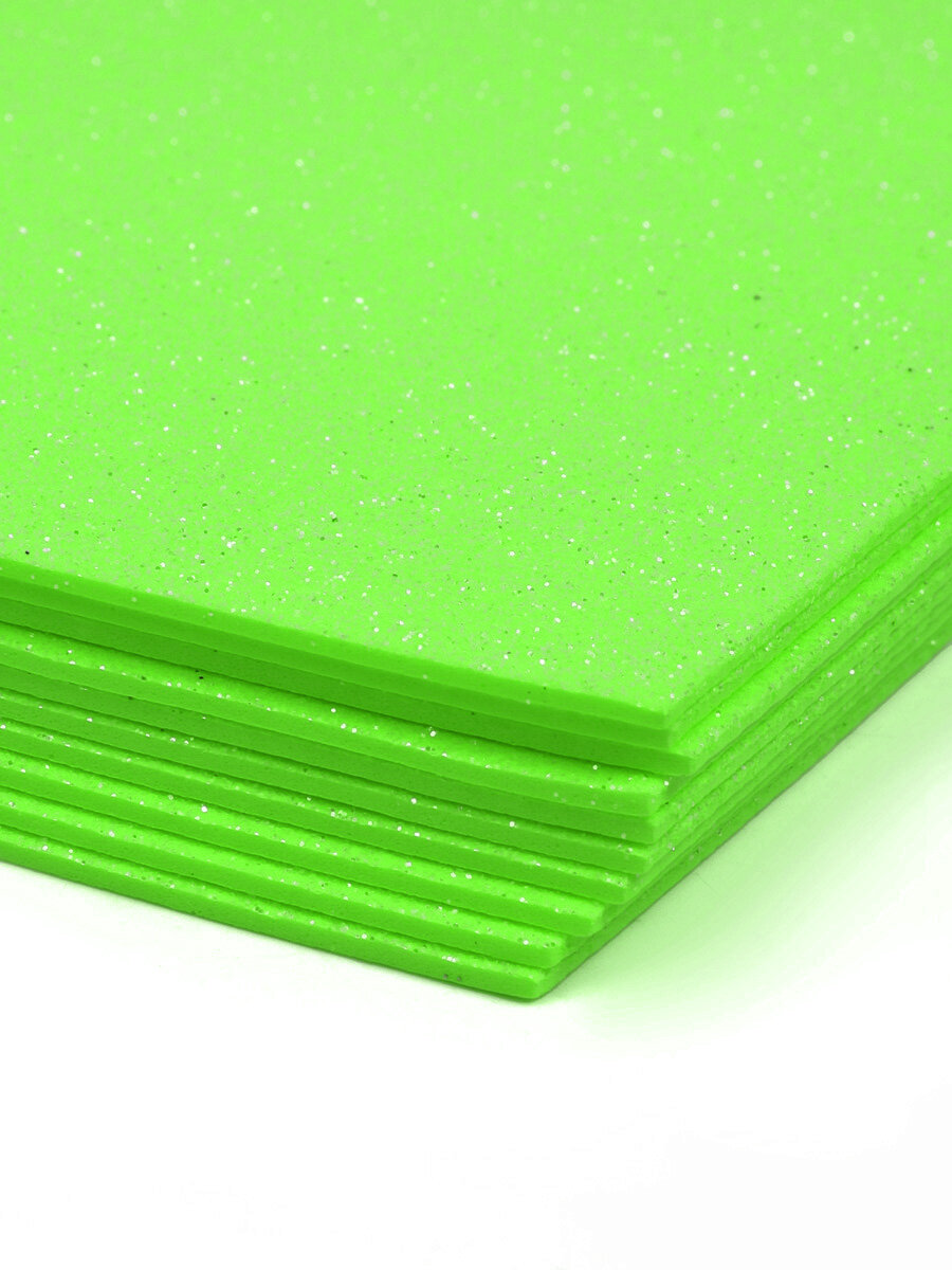 Фоамиран с глиттером, зеленый (H005), 2мм, 20*30см, 1шт
