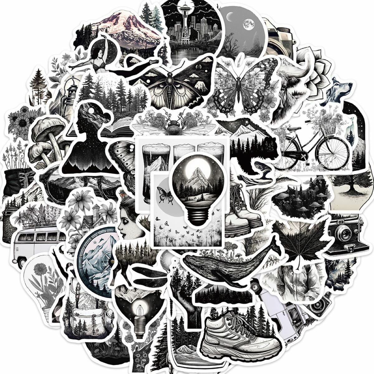 Купить Набор наклеек Поход в черном цвете Ретро, Винтаж для Скрапбукинга и творчества/ Voropaeva11