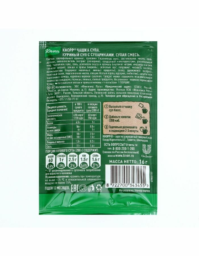 | Особенности | натуральный продукт / с вермишелью / с сухариками |