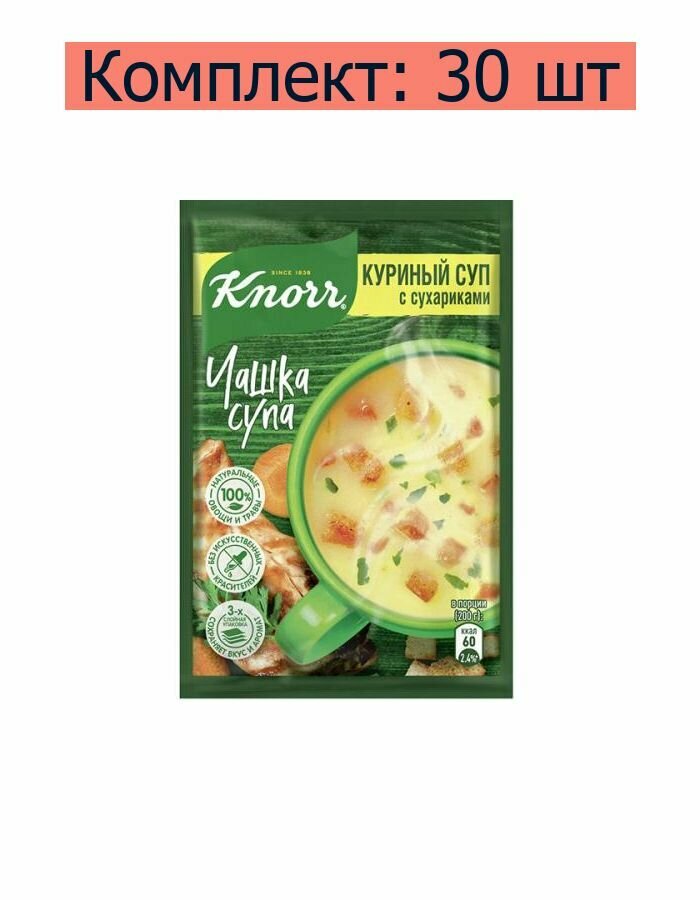 Купить Суп быстрого приготовления Knorr Чашка супа Куриный суп с сухариками, 16 г, 30 шт