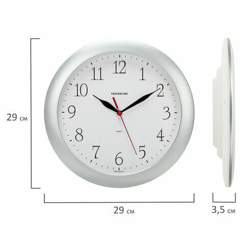 СохранитьКомплект 5 шт, Часы настенные TROYKA 11170113, круг, белые, серебристая рамка, 29х29х3.5 см интересное: