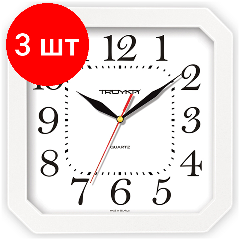 Комплект 3 шт, Часы настенные ход плавный, Troyka 31310316, квадратные, 29*29*3.5, белая рамка интересное: