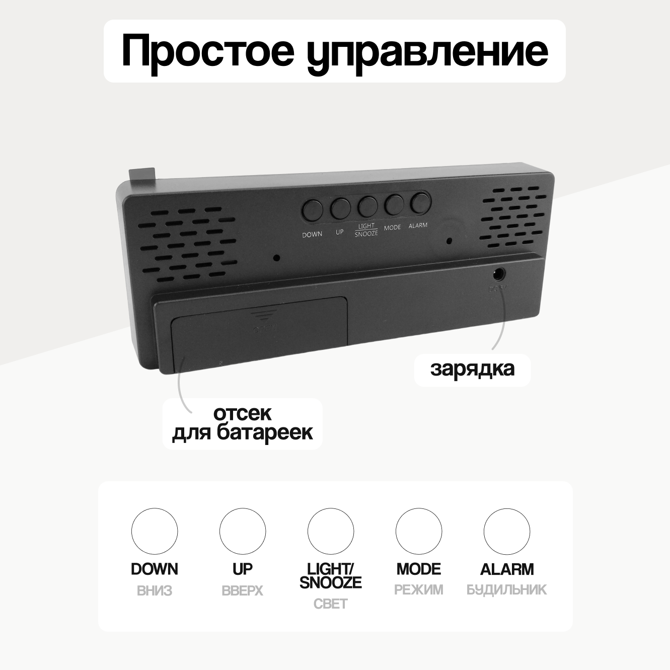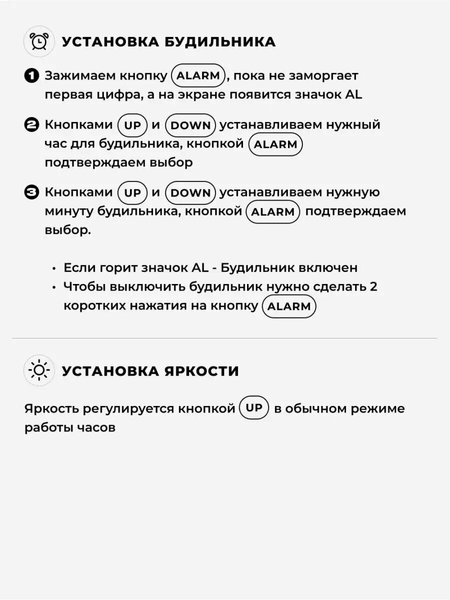| Особенности | батарейки в комплекте, будильник |