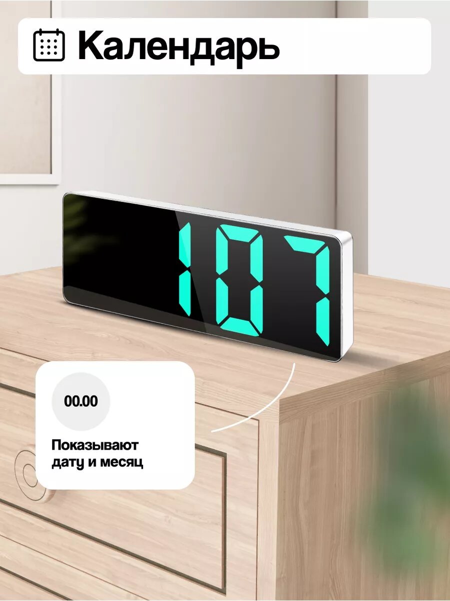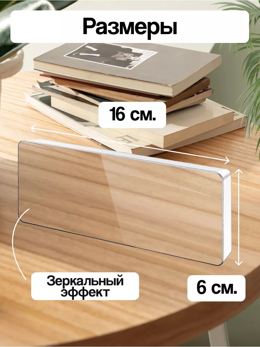Часы настольные электронные на батарейках от сети, зеркальная поверхность, с белыми цифрами, декор для кухни и дома