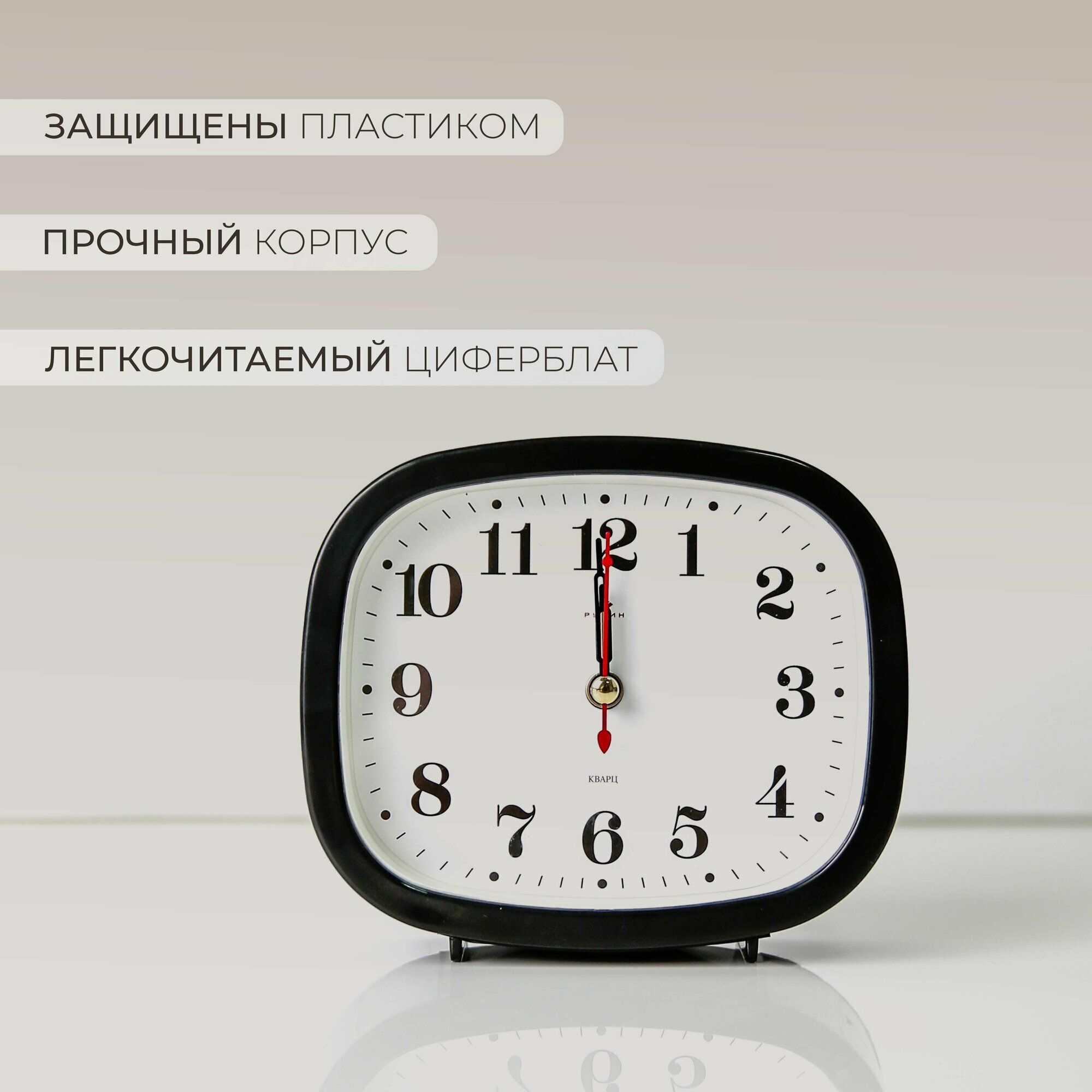 Будильник Рубин Классика, кварцевые, пластиковый корпус, арабские цифры