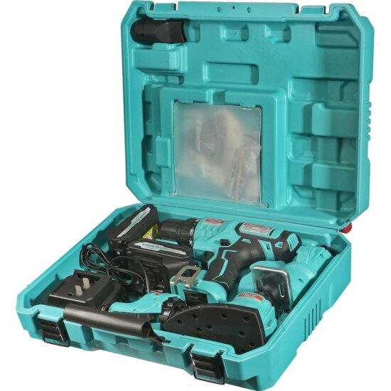 | Комплектация | Аккумуляторный инструмент Аккумуляторная батарея (2шт) Зарядное устройство Рабочая насадка-шуруповерт Рабочая насадка-лобзик Рабочая насадка для шлифования Рабочая насадка-реноватор Набор бит (6шт) и адаптер для бит Набор сверл (6шт) Пильное полотно Дельтовидная платформа для шлифования Шлифовальная бумага (4шт) Насадка для реноватора (2шт: шабер, пила) Патрубок для пылеотвода Инструкция по эксплуатации Инструкция по безопасности Кейс |