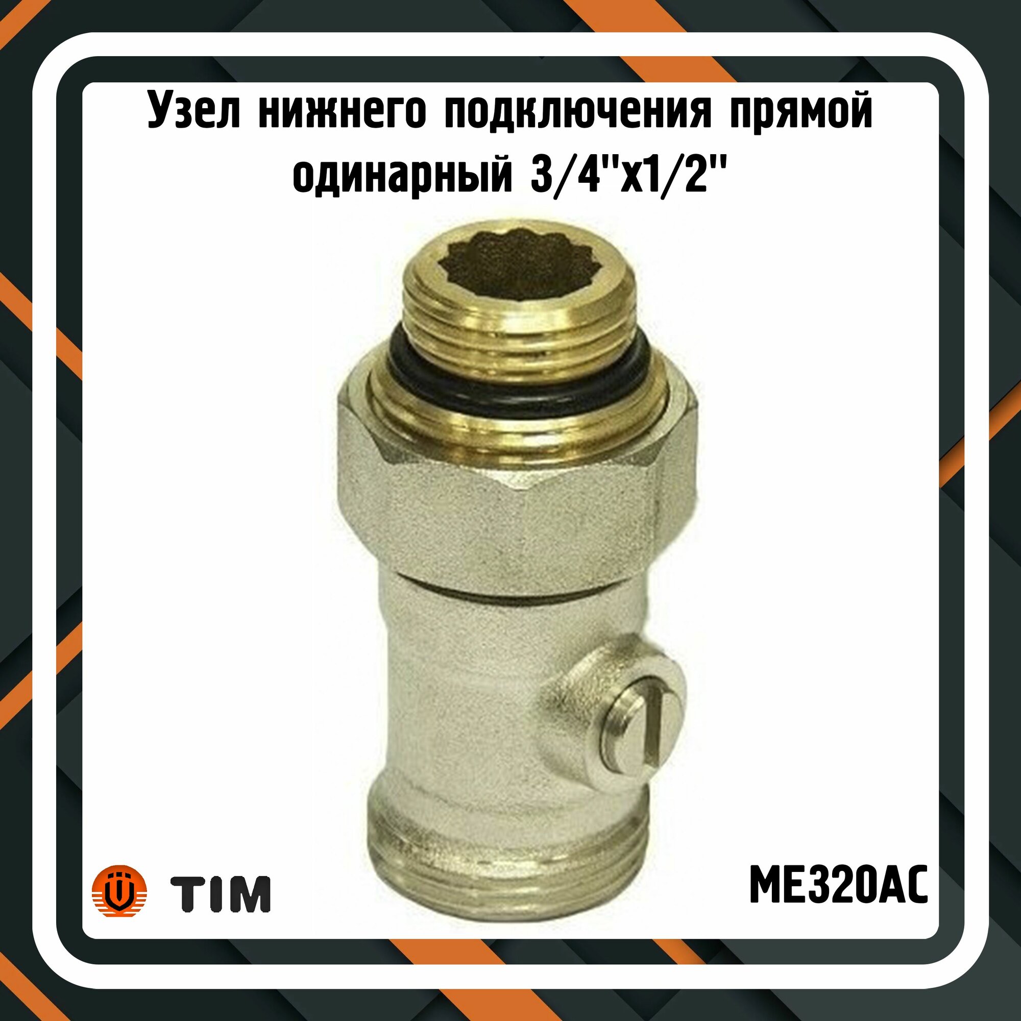 Купить Узел нижнего подключения прямой одинарный 3/4"х1/2" TIM ME320AC