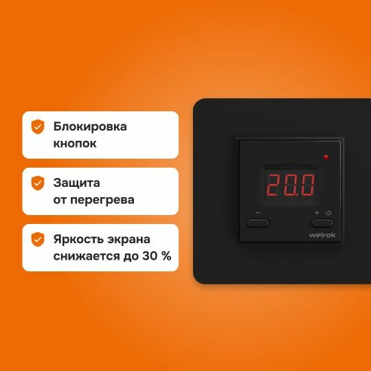 Welrok st bk Терморегулятор цифровой с индикацией температуры 16 А, 3000 ВА, 5…40 °С