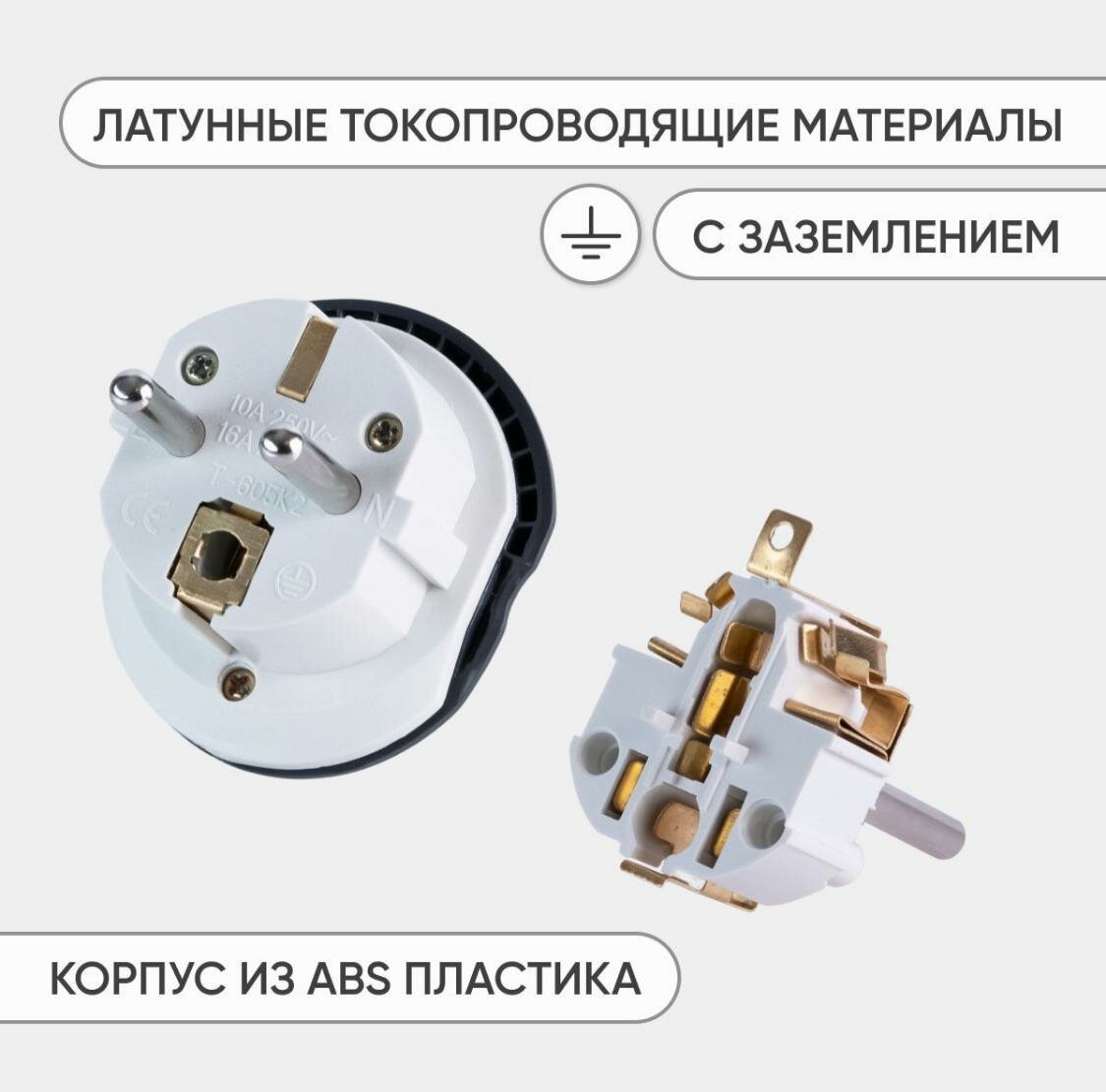 Евро-переходник с заземлением для плоских и тройных вилок белый