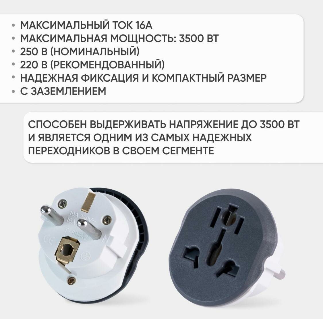 Евро-переходник на все виды розеток, Премиум сетевой адаптер на евро вилку / для плоских и тройных вилок ( EU / US / UK / AU ) , с заземлением/белый